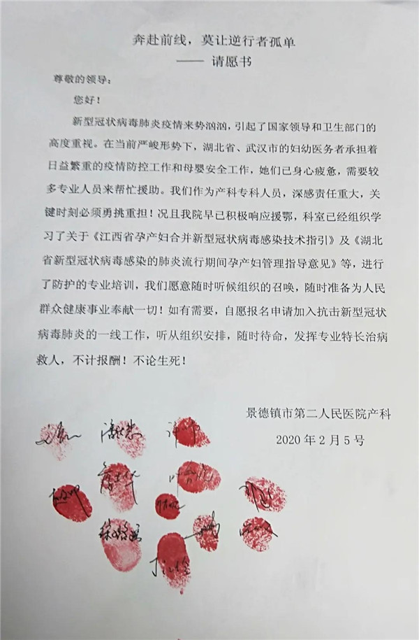 “国家有难,匹夫有责;虽为女子,不让须眉”!产科娘子军也想尽自己的一份力。2月4日,一份来自江西省卫生健康委下达的文件,需要组建援鄂产科应急团队,得知这个消息后,有一群“娘子军”她们不计报酬,无论生死,请领导批准,不约而同按下心心相印的手印,纷纷递上了请战书!与此同时,“赣鄂两地防控期间血液联动”倡议活动开启,大家踊跃参加义务献血。科室程婷护士克服怕打针的心理,义无反顾地参加义务献血活动。当她妈妈得知她请战援武汉后又义务献血,抖索着给了她一巴掌,我们知道那是一个母亲对孩子的疼惜,对孩子的担心。谁不是***好女儿,孩子的好妈妈,丈夫的好妻子,她们都不惜一切,逆风前行与疫情抗战到底。
