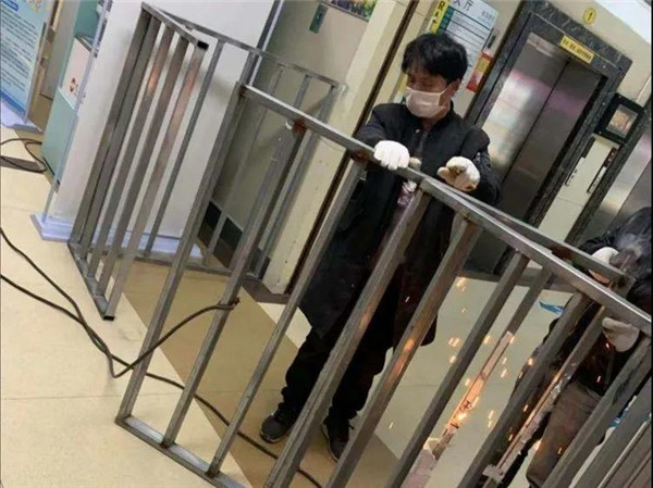 根据疫情防控工作的需要,医院要在住院部大楼实施门禁,限制人流量。保卫科接到任务后一方面与宣传科、总务科配合,提前张贴下发门禁通告,减少因实施门禁而产生的矛盾;另一方面,为有效控制人员进入,与施工人员一起连夜搭建踏步门拦。少数患者家属对实施门禁不理解颇有微词,李敏了解情况后,立即安排保卫科员工每天轮班到卡口解释,遇到行动不便,还主动将其护送到相关科室。实施门禁制度对安保人员来说,尽管困难多、难度大,但对医院疫情防控、维护诊疗秩序起到了积极有效的作用。