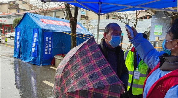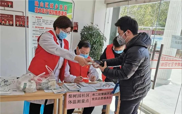医院党员志愿者检测体温严把关口