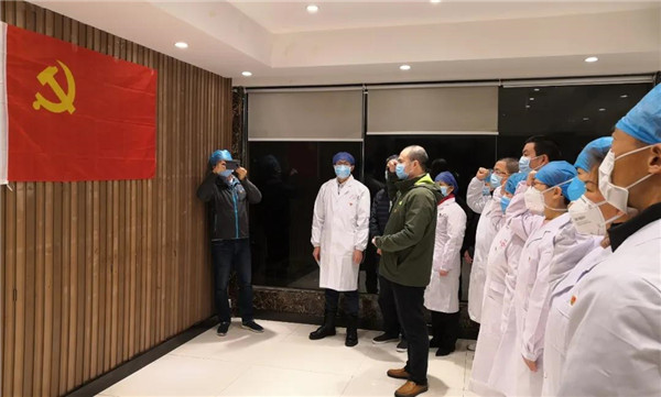 医疗队员面向党旗庄严宣誓