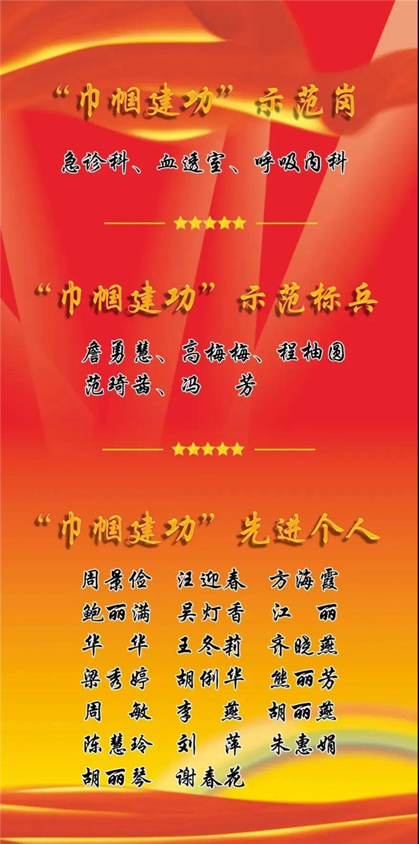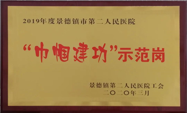 2019年是全面建成小康社会、实现第一个一百年奋斗目标的关键之年,也是全面落实中国妇女十二大目标任务的开局之年。一年来,景德镇市第二人民医院全面贯彻落实习近平新时代中国特色社会主义思想和党的十九大精神,医院广大妇女职工拼搏进取、开拓创新、争创一流,为医院发展奉献了巾帼力量,创造出不凡业绩,特别是抗击新冠病毒疫情工作中涌现出一批先进集体和个人。为表彰先进,树立榜样,医院授予3个科室“巾帼建功”示范岗,5位同志“巾帼建功”标兵,20位同志“巾帼建功”先进个人荣誉称号。