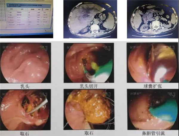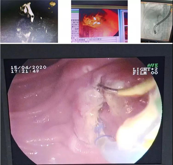 病例一:患者俞先生,男,78岁,反复上腹部胀痛不适1年余,全身皮肤黏膜及巩膜黄染1月,考虑胆总管结石,既往有高血压3级、脑梗塞病史,长期服用降血压、抗凝药物,常规手术,风险极大,患者及家属难以接受手术风险,经余燕傧主任及肝胆团队慎重考虑下,决定行无痛ERCP术,顺利取出胆总管结石,取得良好手术效果。