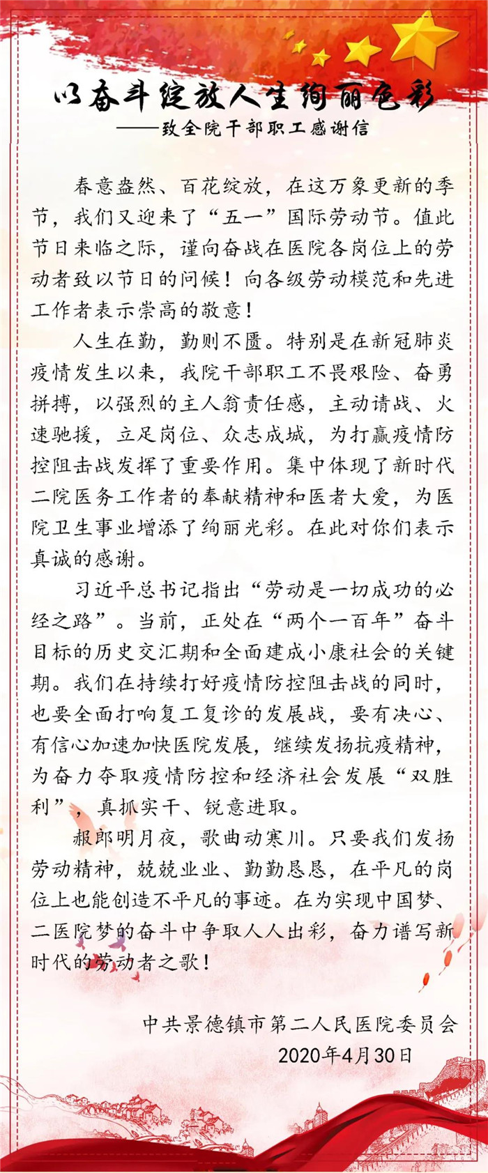 以奋斗绽放人生绚丽色彩——致全院干部职工感谢信
