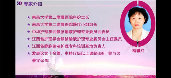 随后,汪迎春隆重介绍了本场活动的特邀嘉宾——中华护理学会静脉输液护理专业委员会委员、江西省护理学会静脉输液护理专业委员会主任委员梅赣红教授。