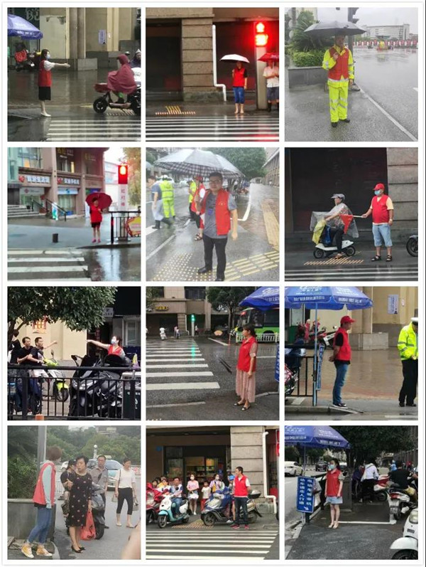 正值汛期,接连暴雨,党员志愿者们风雨无阻地站在路口,身着红马甲,手持引导旗,协助交警维持交通秩序,对非机动车和行人走机动车道、闯红灯、乱穿马路、越线等候等违章行为进行劝阻,引导广大市民自觉遵守交通安全法律法规,提高交通文明素质。志愿者们以实际行动,倡导社会文明新风,为营造有序、安全、文明、和谐的道路交通环境贡献自己的一份力量。