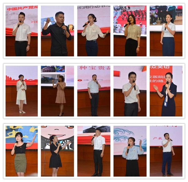 擂台赛紧张激烈、精彩纷呈,来自内科、外科、行政后勤党总支部的15位参赛选手用小故事诠释大道理,用小话题揭示大主题,或紧扣工作岗位实际,宣扬爱岗敬业、无私奉献、全心全意为人民服务的高尚精神;或用激昂的斗志和铮铮誓言,表达了不忘初心、牢记使命的信念和决心……多角度讲解自己对共产党员精神、信仰的理解。