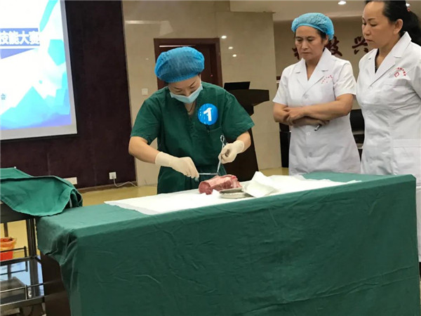 市二医院产科助产士张红文自接到通知的那一刻起,利用自己的休息时间,在腥臭的牛舌上一遍遍的反复练习。此次比赛中,虽抽到第一签,但她用如云流水般的操作技能,经过几番激励的角逐,力压群雄,张红文斩获第一名的好成绩,将代表景德镇市护理学会参加全省总决赛。