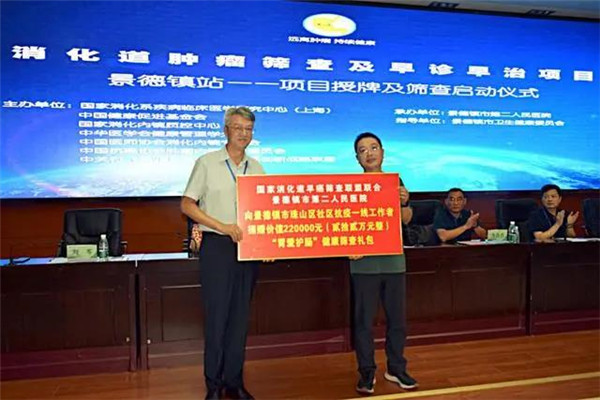 在医院科协成立同时,第一届“胃爱护肠”江西省消化道肿瘤筛查及早诊早治项目启动仪式在医院成功召开,启动仪式中,由联盟中心向珠山区社区防疫一线的工作人员进行消化道早癌筛查套餐(500人份)进行了捐赠。