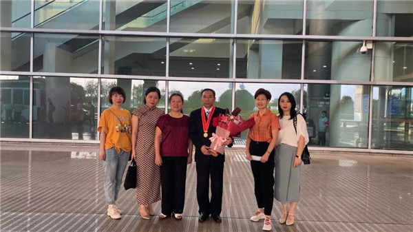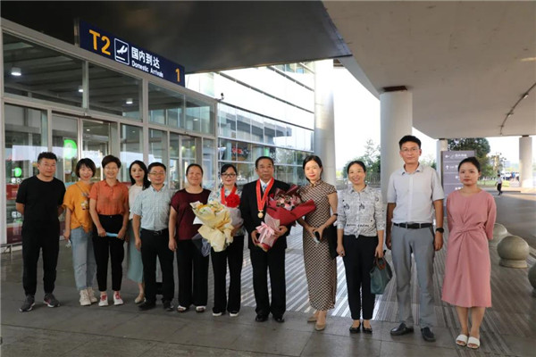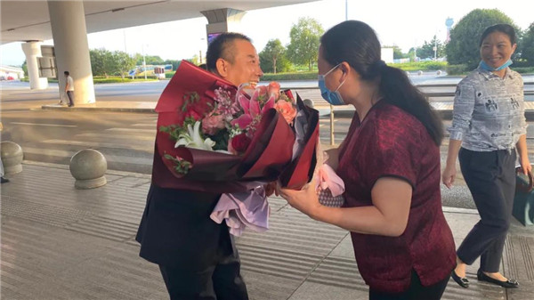 日前,在北京举行的全国抗击新冠肺炎疫情表彰大会上,景德镇市第二人民医院感染科主任、呼吸与危重症医学科副主任、内科党总支部书记副主任医师徐立新被评为全国抗击新冠肺炎疫情先进个人,是我市医疗系统唯一获此殊荣的医务工作者。9月8日,徐立新参加完表彰大会后载誉而归,市人社局奖励科主任科员黄劲琦、市卫健委党组成员陈铁梅、市卫健委人事科科长章霞等到机场迎接抗疫英雄的归来。
