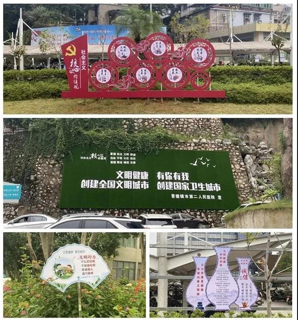 创建全国文明城市、创建国家卫生城市、弘扬培育社会主义核心价值观……院内随处可见各种色彩丰富、主题鲜明的公益广告,融入到绿植景观中,赏心悦目的同时引导广大市民自觉遵守文明行为,积极参与到“双创”中来。