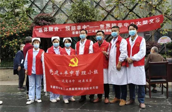10月29日是第15个“世界卒中日”,为切实提高广大居民对脑卒中防治重要性的认识,倡导健康生活方式,市二医院神经内科党支部志愿者们在院门口开展以“医体融合 预防卒中”为主题的大型义诊活动。
