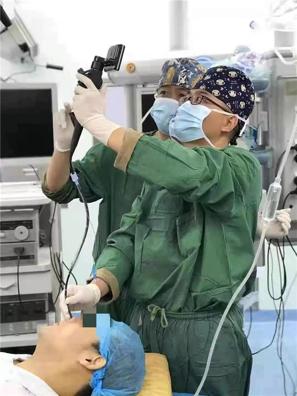40岁吴某患者(化名),罹患强直性脊柱炎多年,平时难以张口说话,仅能饮少量流食,更让他痛苦的是胆囊炎经常发作,曾辗转求诊多家医院,均因麻醉风险太大未能手术治疗,听朋友介绍市二医院麻醉科技术不错,遂来医院就诊,外科医生立即联系麻醉科主任江俊文,展开术前讨论,制定了完善的麻醉方案,手术当日在给予患者充分表面麻醉后,既由江俊文主任亲自操作纤支镜引导清醒经鼻插管,过程顺利,病人安返病房,家人由衷感谢医护人员!