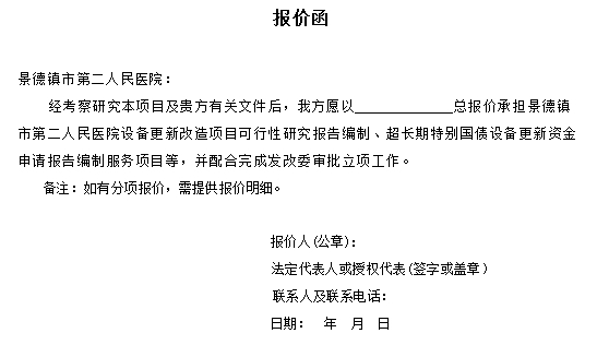 关于景德镇市第二人民医院2026年超长期特别国债医疗设备更新改造项目可行性研究报告编制服务和景德镇市第二人民医院医疗服务能力提升工程外科大楼改造项目病房改造中央预算内资金申请报告编制服务项目的询价公告