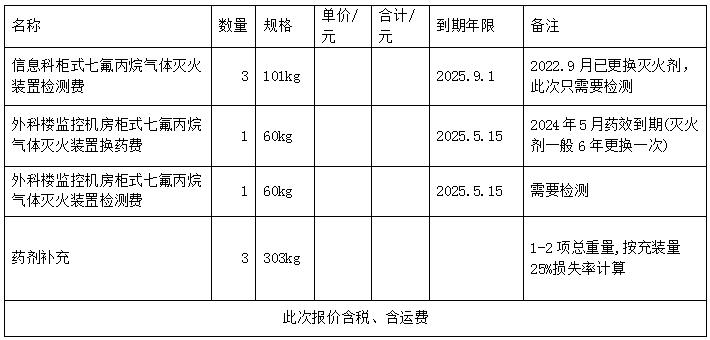 关于景德镇市第二人民医院七氟丙烷灭火器检测换药项目的询价公告